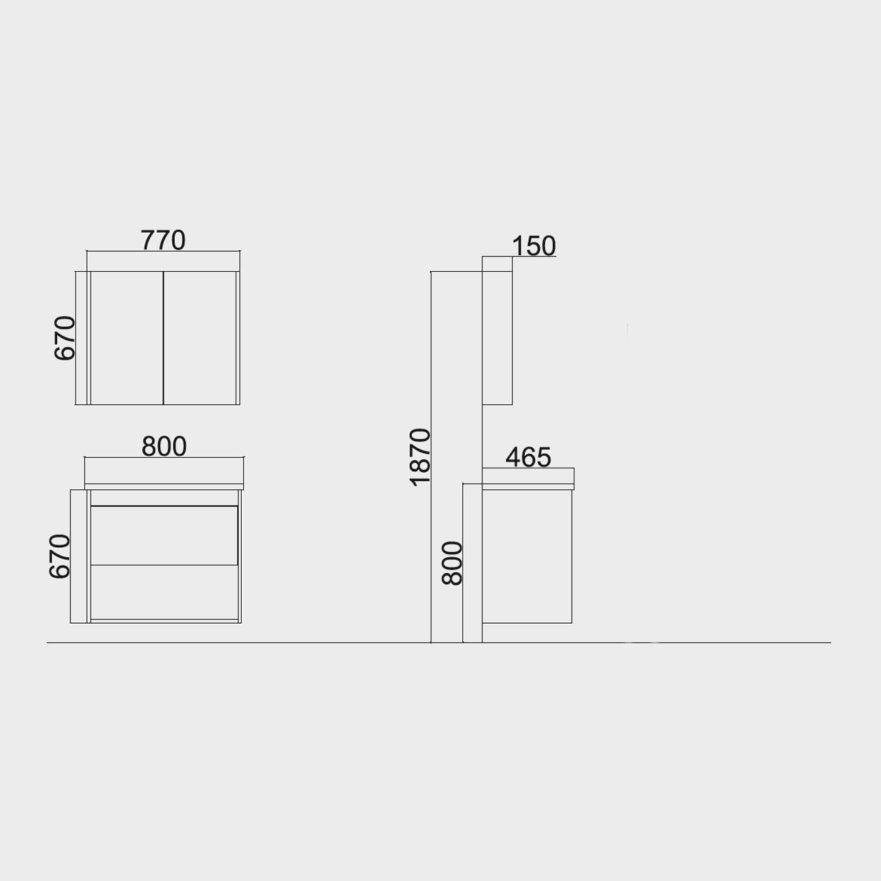 Üst Dolap/ Top Cabinet : 650 x 670 x 150