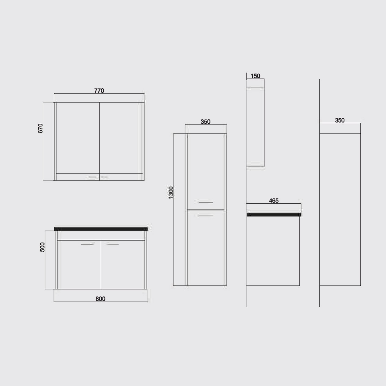 Boy Dolap / Side Cabinet : 350 X 1300 X 350